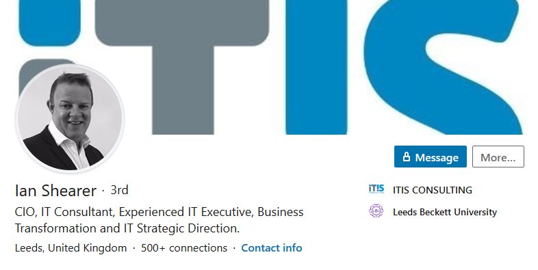 For example, we searched "it consultant UK LinkedIn" and found Ian Shearer (profiled below) as the first individual (not company) LinkedIn profile listed: